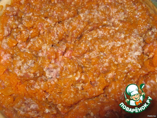 Соединить с телячьим фаршем, посолить, добавить яйцо и хорошо перемешать.