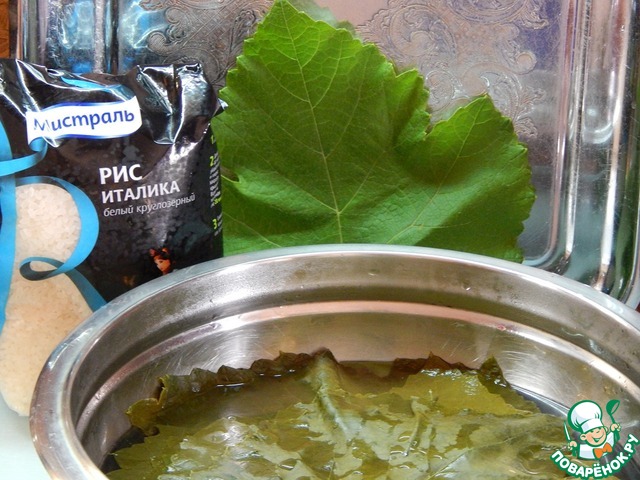 Виноградные листья заливаем кипятком и выдерживаем 20 минут.