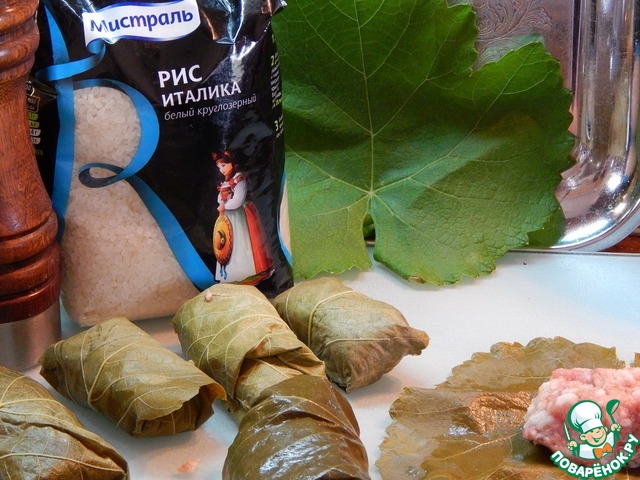 | Долма - голубцы в виноградных листьях - одно из самых популярных блюд на Востоке. Название происходит от тюркского слова "dolmak" - наполнять и первоначально оно относилось ко всем блюдам с мясной, рисовой или овощной начинкой. И все же в наши дни настоящей долмой считают ту, в состав которой входят виноградные листья. В выходные побывала у сестрички в гостях, запаслась виноградными листьями (зять выращивает отличный виноград) и с удовольствием делюсь рецептом. |