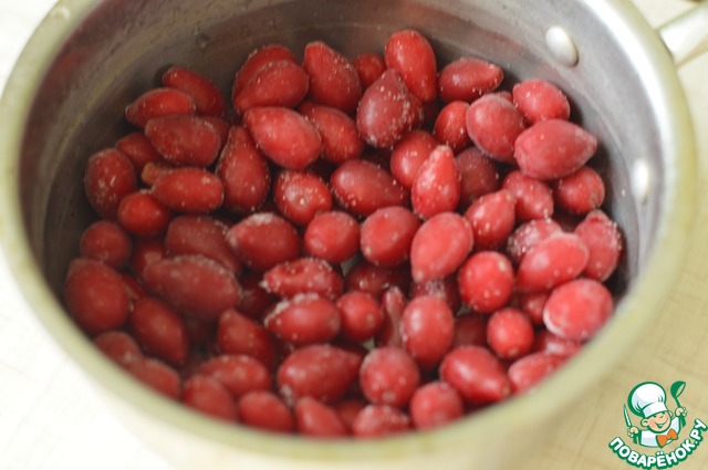 2. Кизил поместить в ковш, добавить воду и проварить 5 минут.