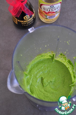 В это время займемся соусом. Зелень помыть, обсушить. Имбирь почистить.