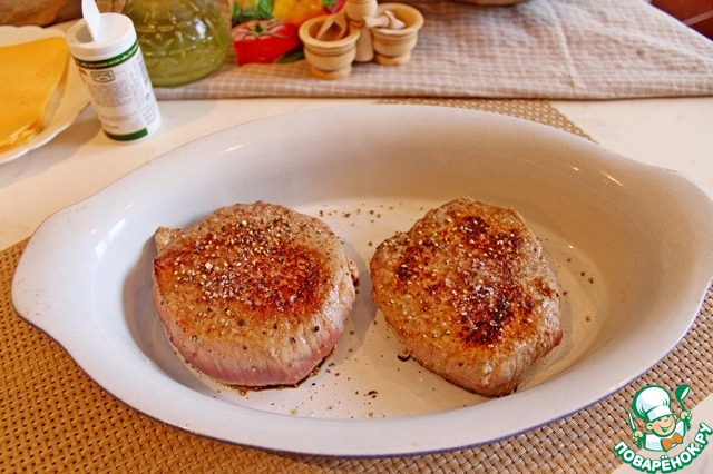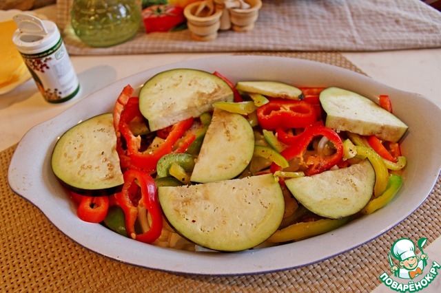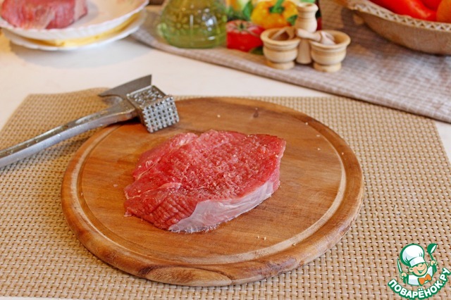 Для приготовления нам понадобится :2 медальона из телятины, весом примерно по 200 гр каждый, баклажан, лук, болгарский перец 2-х цветов, помидоры, соль, перец черный молотый, майонез Махеев, масло растительное для жарки, чеснок и сыр твердый пластинами (или можно просто натереть ).