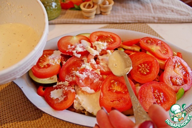 Поливаем соусом наши овощи с мясом. Ставим в заранее разогретую духовку до 180 гр на 1 час.