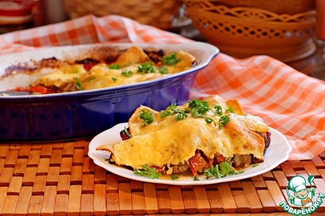 | Потрясающе вкусное мясо с сочными овощами и под сырной "шубкой". Получается вкусно и сытно!! За рецепт благодарна Елене!!! |