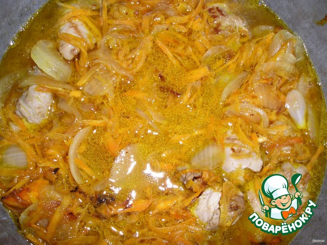 Обжариваем на сковороде самурайчиков, чтобы слегка прихватились. У меня было 2 захода. Помещаем мяско в казан.
