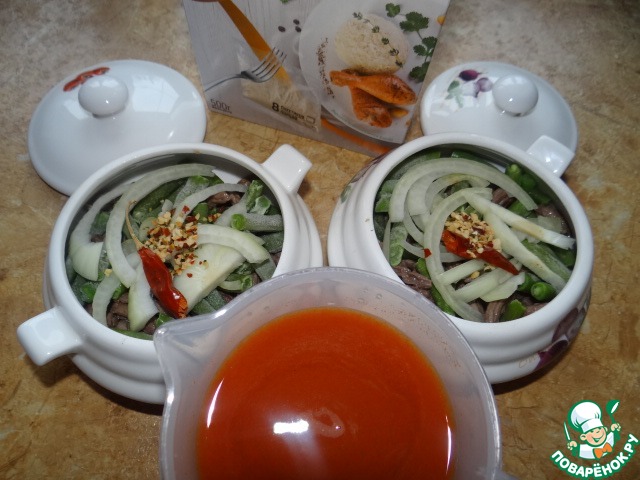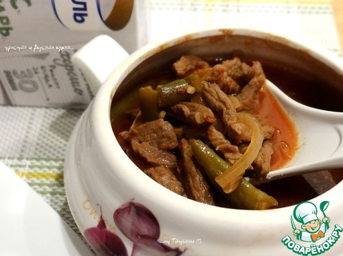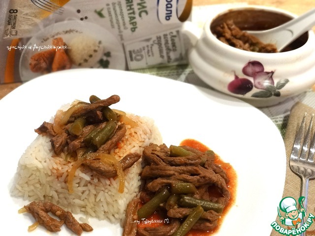 Беф а-ля Строганов из телятины и стручковой фасоли