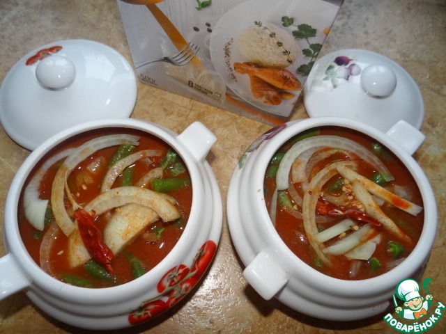 В горячей воде растворить томатный порошок, добавить соль, сироп, крахмал;