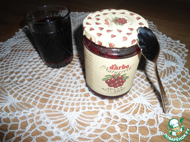 Начнем с приготовления соуса. Основные составляющие - брусничный соус Darbo и гранатовый сок.