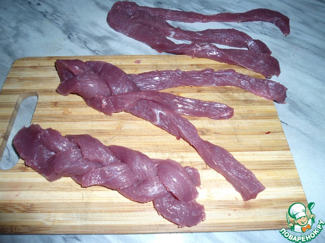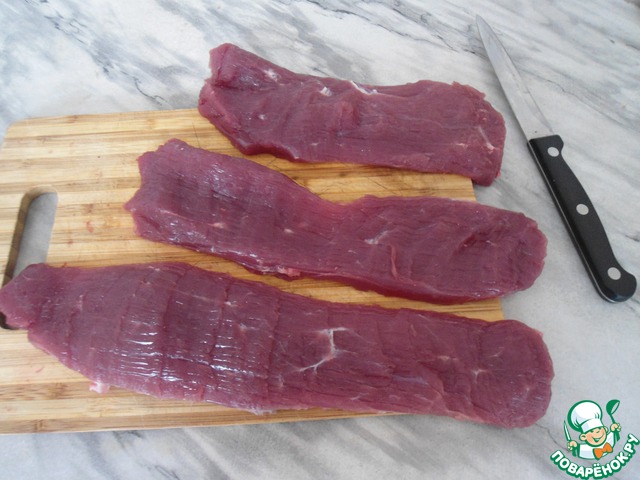 Нарезаем телятину на пластинки.