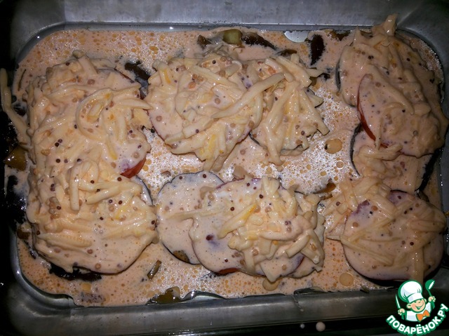 | Сочная маринованная телятина с баклажанами, помидорами, лучком, запеченная под сырно-горчичной корочкой. Вкуснятина! |