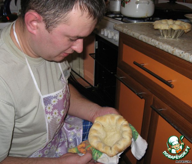 Муж совершил небольшую ошибку, тесто не должно выставляться из формочки, иначе потом не достать, но он этого не знал и думал так будет симпатичней. Я, думаю, что это не страшно, кто ничего не делает, только тот и не совершает ошибок!