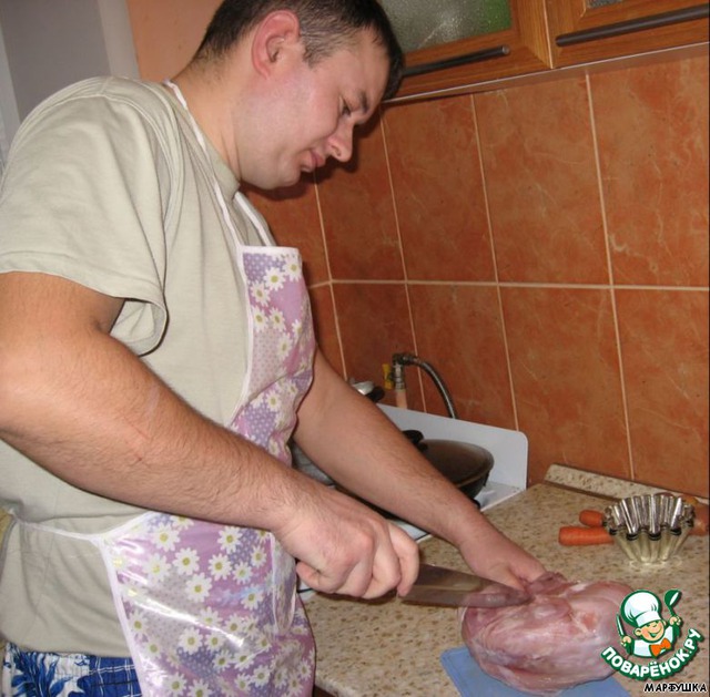 Приступаем! Точнее приступает мой любимый муж, а я наслаждаюсь всем этим действием происходящим на кухне!