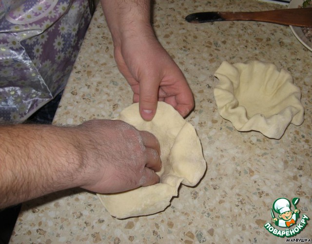 Вот так муж аккуратненько выкладывал тесто в формочки.
