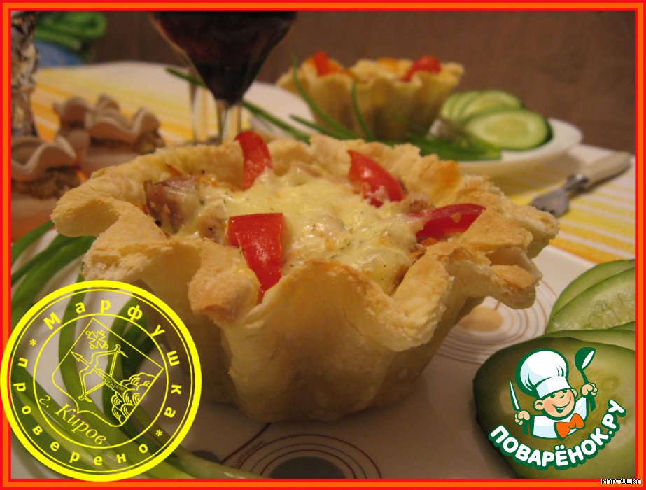 Слоеное тесто раскатывает (тесто купил в магазине), вырезает кружок чуть больше размера формы - и укладываем внутрь.