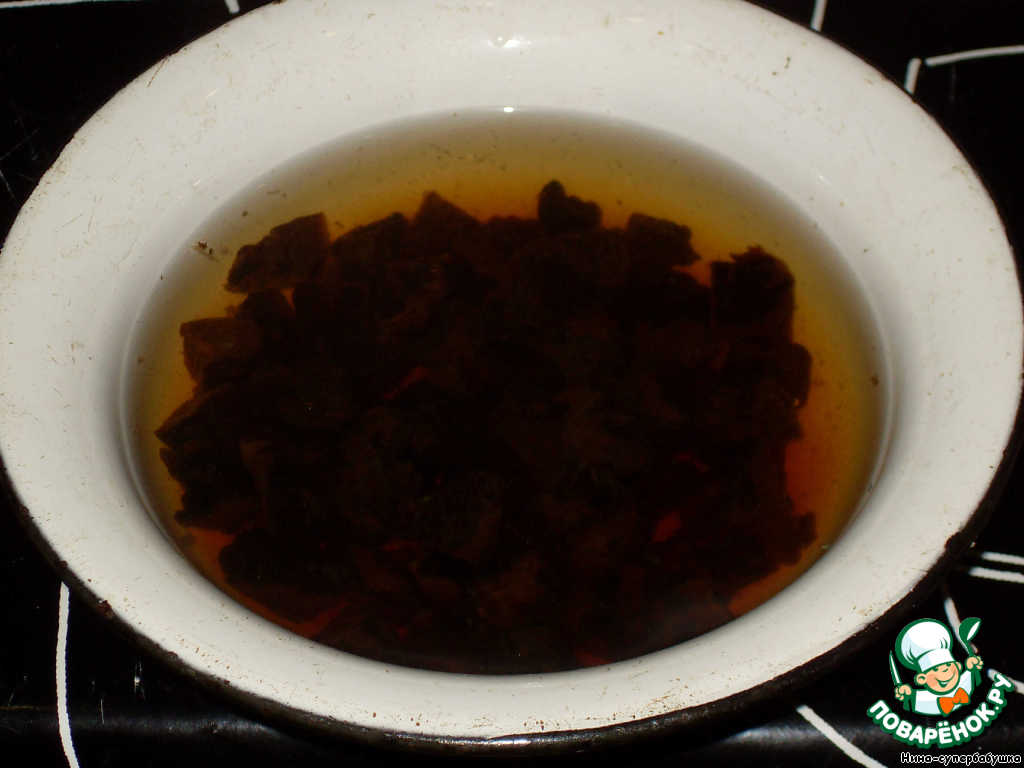 Мясо обжарить до легкой румяности в глубоком сотейнике, влить воды, чтобы она только-только покрыла мясо, и поставить тушиться где-то на полчаса.