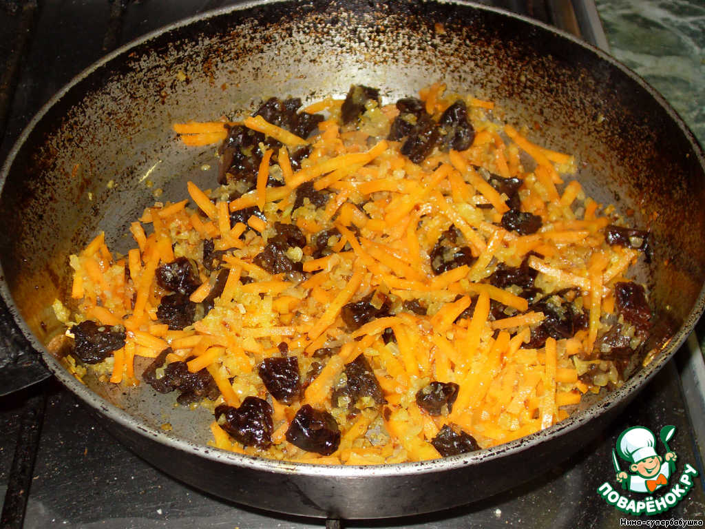 Морковь и лук нарезать соломкой. Обжарить морковь с луком, снять с огня.