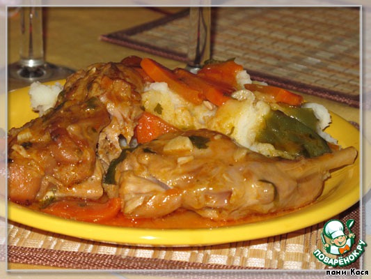 | Первый раз, когда готовила кролика, не очень он нам понравился... жестковат был, да и вкус невразумительный. Оказалось, я просто не умела его готовить! На сей раз сделала все правильно. Ну и вкуснятина, доложу я вам!!! |