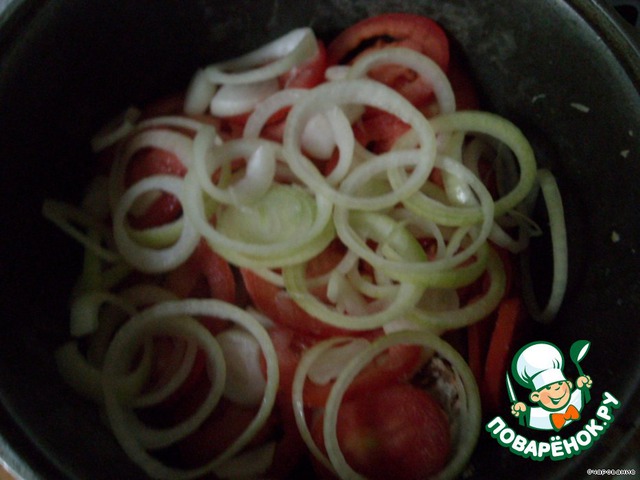 Залить все стаканом вина, бульоном, добавить специи и томить в духовке 1 час, затем вынуть добавить лавровый лист,чеснок и тушить еще 30 минут.