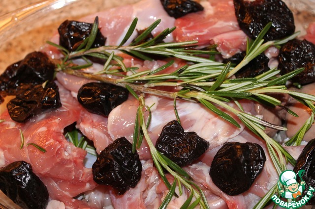 Я не промываю, просто перекладываю его черносливом и розмарином. Чернослив кстати тоже не запариваю, а просто промываю.