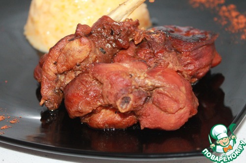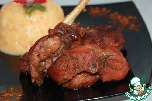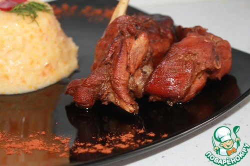 | Кролик приготовленный по такому рецепту имеет очень изысканный вкус, прекрасный внешний вид, сочетание вкусов сладкого меда и острого красного перца. |