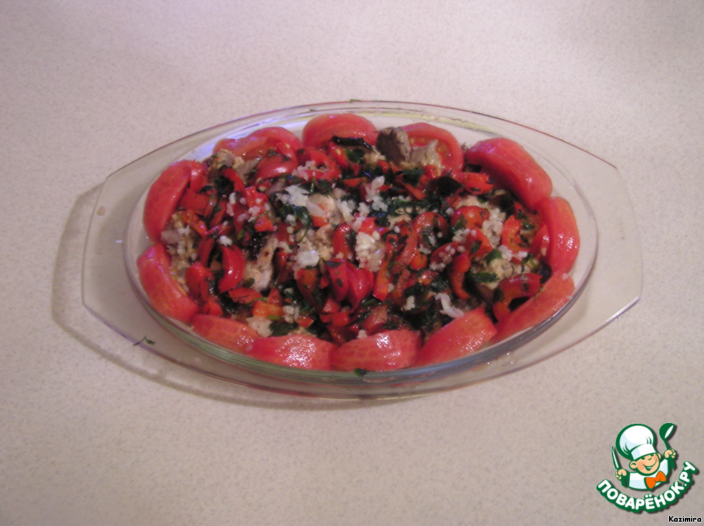 7. Ставим в духовку при t 160-180 на 8-10 мин (перец и помидоры должны стать мягкими)