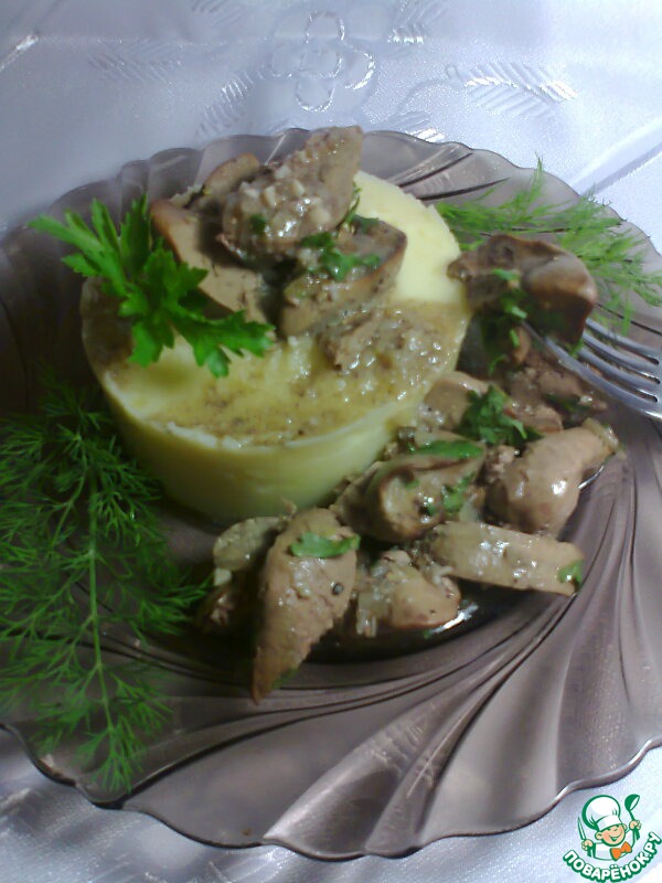 У меня было картофельное пюре! Печень получилась мягкая, пряная, с лёгкой остринкой! Кушайте! Вкусно!