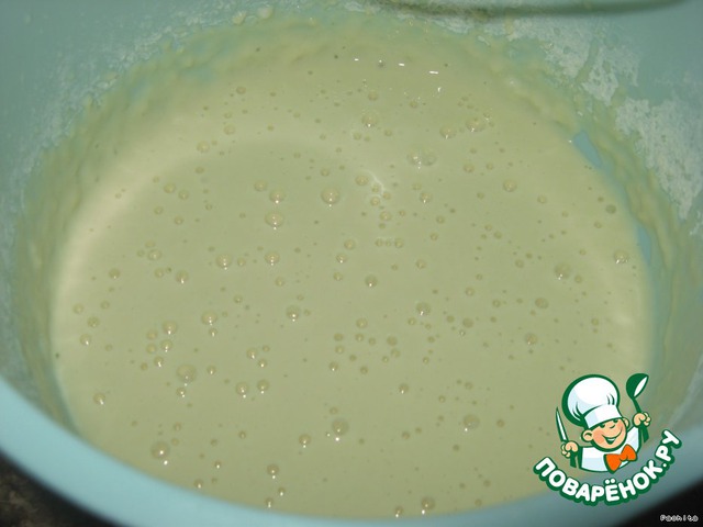 Добавить муку , хорошо перемешать(я взбиваю миксером).