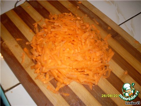 Обжариваем с нарезанным полукольцами луком, до золотистого цвета...