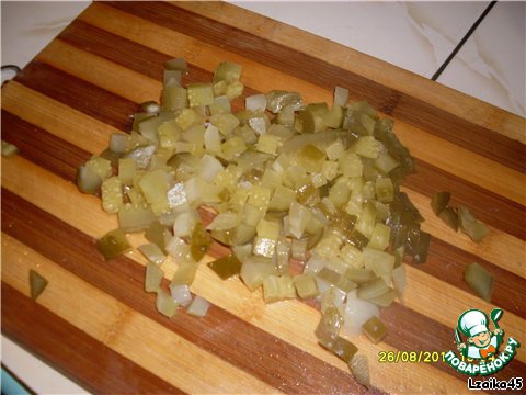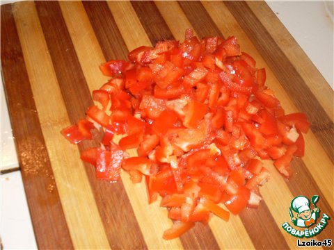 Срезаем лишний жир и нарезаем небольшими кусочками...