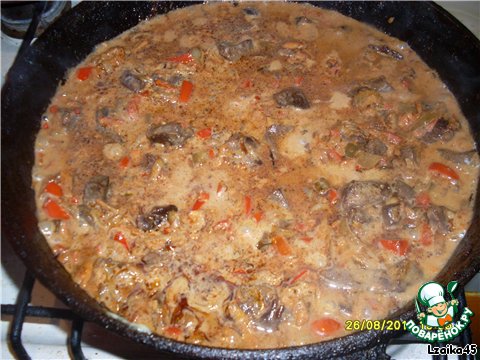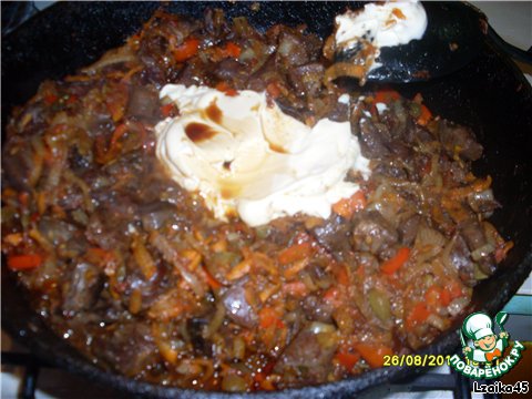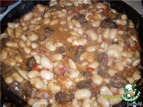 Отварную фасоль добавляем в сковородку к сердцу и тушим ещё минут 15.