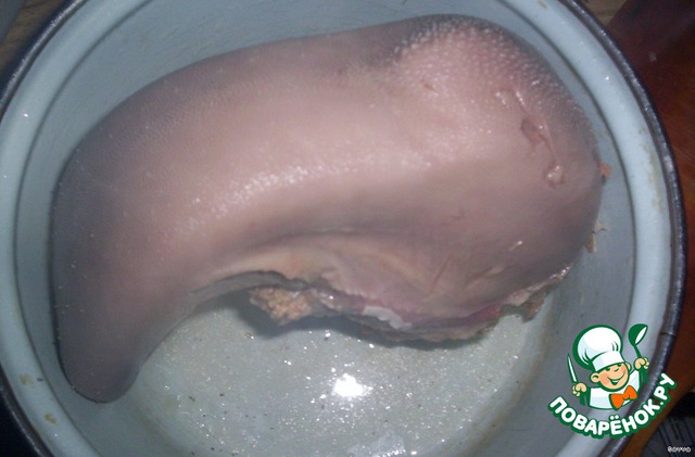 - язык вынуть из горячего рассола и поместить в холодную кипяченую воду на 5 минут, воду слить, язык залить холодной кипяченой водой на 5 минут (воду можно охладить в холодильнике), воду слить
