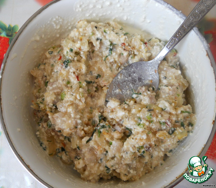 В сковороде на растительном масле поджарить мелко порубленный шпик, порезанный лук, сухари, петрушку. Снять с огня, охладить.