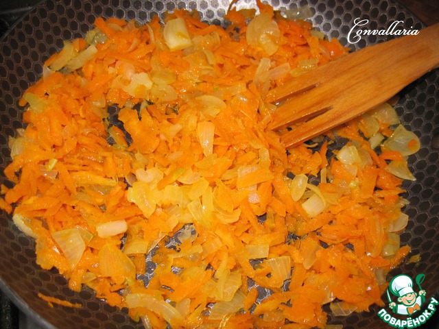Мелко нарезанный лук и тертую на крупной терке морковь спассеровать на растительном масле.