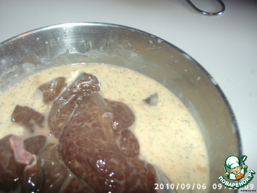 Отбитые печеночные отбивные залить молоком и оставить мин. на 20