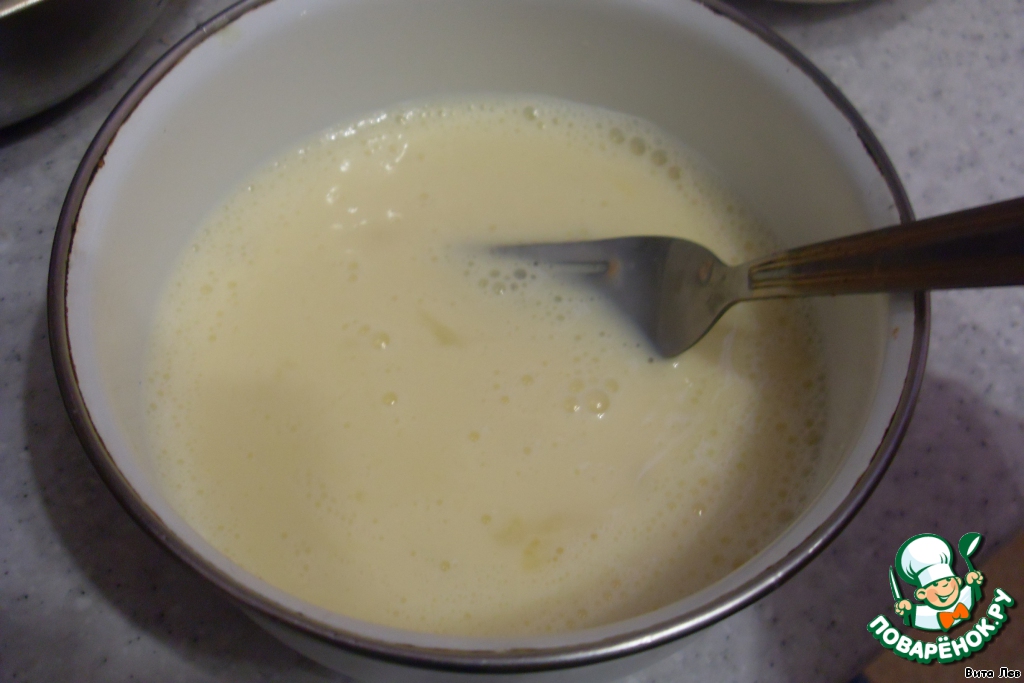 В отдельной емкости смешиваем яйцо с молоком.