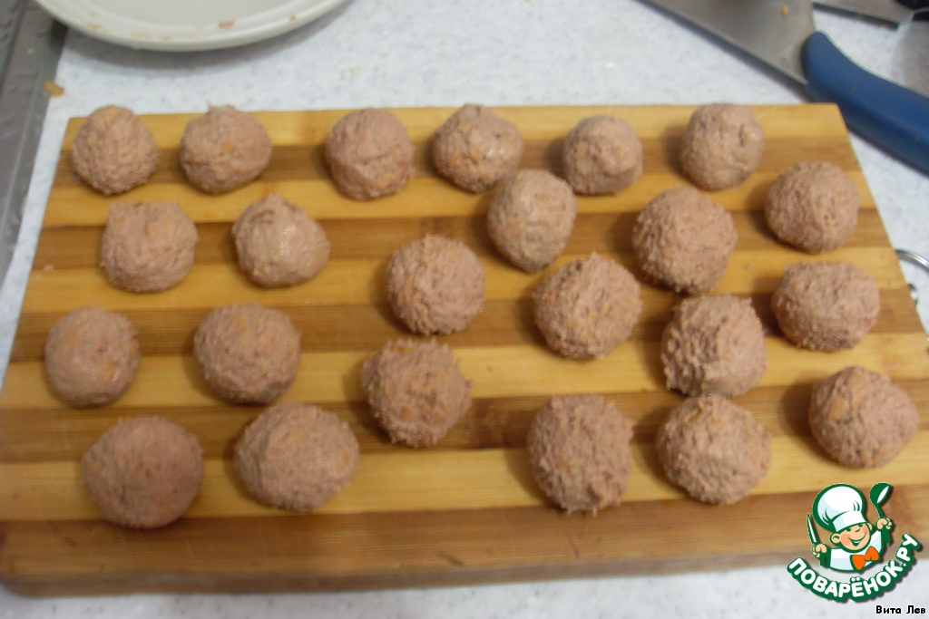 Из печеночного фарша формируем шарики величиной с грецкий орех.