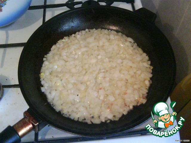 Лук мелко нарезать, обжарить на растительном масле до мягкости.