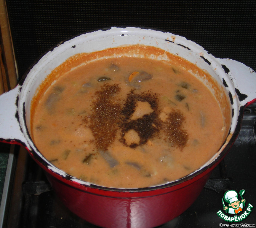 Морковь и сельдерей спассеровать на растительном масле, добавить муку и обжарить пару минут.