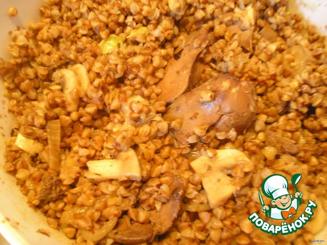 | Очень нежная гречневая каша с печeнкой и грибами |