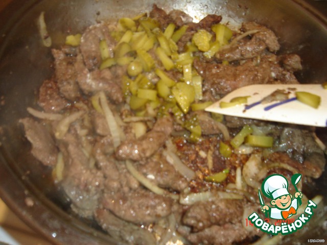 | Печень у меня в семье любят все!!! Готовила я еe с маринованными огурчиками :) вкус сказочный!!! Всем советую!!! |