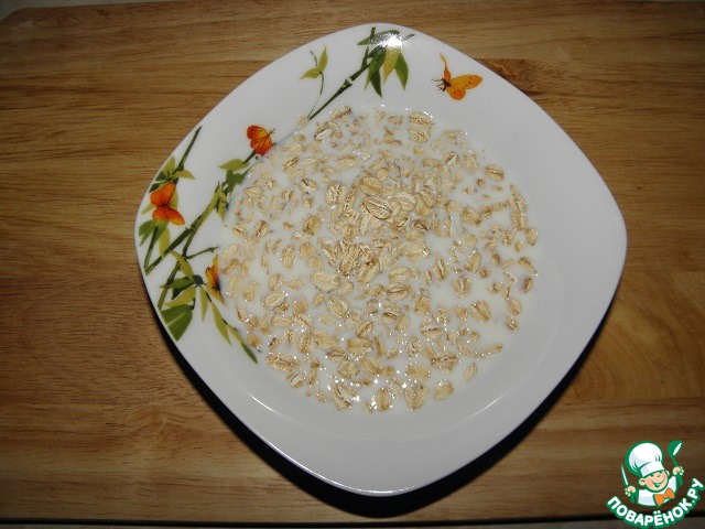 Овсянку залить молоком, и оставить для набухания на 15-20 минут