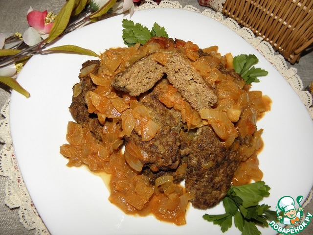 Полученным соусом, залить котлетки и тушить под крышкой 15 минут на небольшом огне.