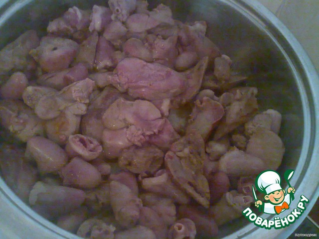 1. Печень и сердце моем, печень режем на кусочки(не мелкие), а сердце приводим в порядок. Нет, валерьяночки и валидольчика не надо! просто срезаем лишний жирок и трубочки-сосуды