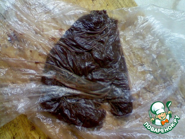 Положить кусок печени в полиэтиленовый пакет и отбить с двух сторон. Так сделать с каждым куском.
