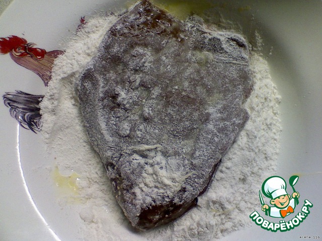 Кусочек отбитой печени сначала обмакнуть в яйце...