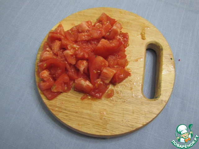 Помидоры освободить от семян и жидкости, порезать кубиками.