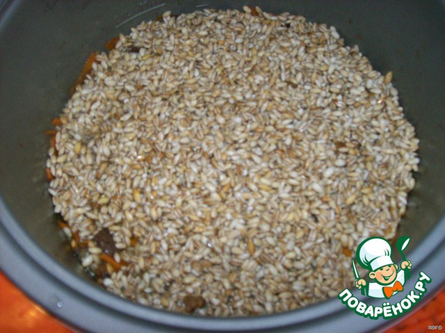 Перловую крупу промыть, перебрать и замочить в воде комнатной температуры на 2 - 3 часа (можно больше).