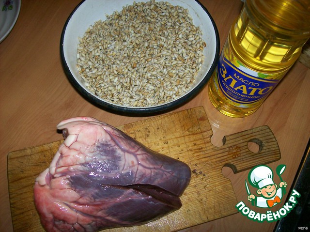 Сердце хорошо промыть, срезать крупные сосуды и жир с "верхушки" сердца, нарезать кусочками около 3 на 3 см.