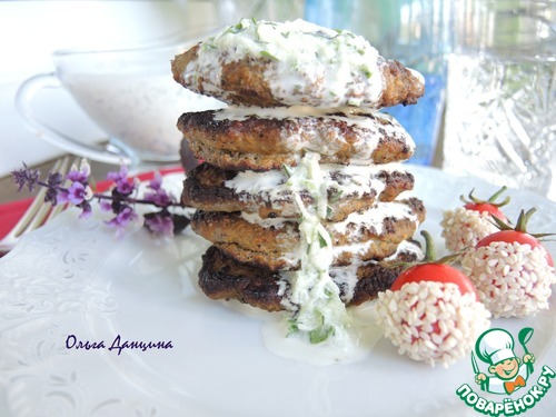 Подаем теплые печеночные оладьи с соусом или просто со сметаной!