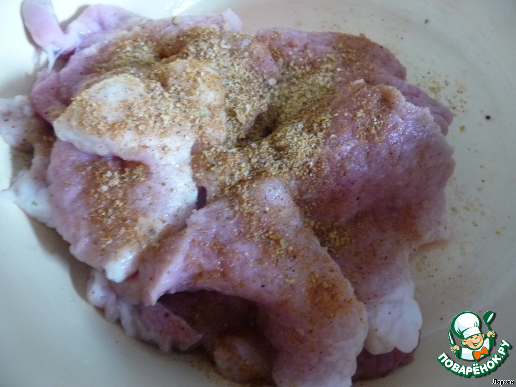 Мясо нарезать порционными кускочками, отбить в пакете,